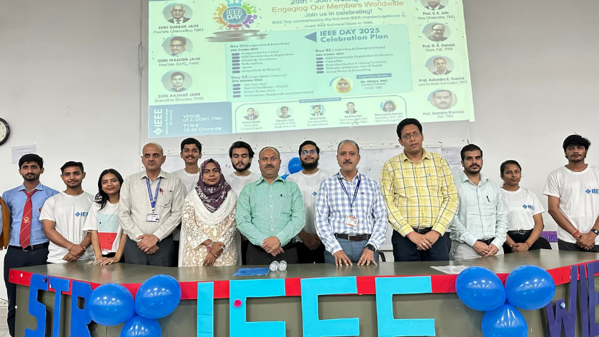 The IEEE Student Branch (SB15123) and IEEE WIE Affinity Group (15123) of Teerthanker Mahaveer University celebrated IEEE Day 2025 from 28th to 30th October 2025 at CCSIT, under the theme “Innovate • Inspire • Ignite.” The three-day celebration brought together hundreds of students from engineering, computer applications, and science disciplines for a series of high-energy events, competitions, and technical showcases.