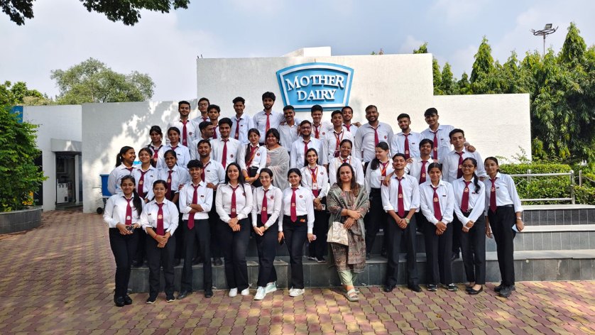 The event poster highlights that the industrial visit was coordinated by Dr Puneet Sethi and Ms Deepti Raj Verma, ensuring smooth planning and execution. Students were taken to Mother Dairy, one of India's most established and trusted dairy brands, to gain first-hand exposure to modern food processing, packaging systems, supply-chain operations, and quality-control procedures.