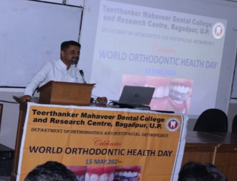 On 15 May, World Orthodontics Health Day was celebrated at TMDCRC, TMU in the Department of Orthodontics. The programme was inaugurated by Principal Dr. Pradeep Tangde and Vice Principal Dr. Ankita Jain, with HODs and faculty from various departments in attendance. Dr. Sumit delivered a lecture on the significance of World Orthodontics Health Day, and Dr. Malvika spoke about achievements within the department and delivered a talk titled “Say No to Do-It-Yourself Aligners,” highlighting regulatory notices and the risks of unsupervised aligner use. The event concluded with a cake-cutting ceremony and refreshments and was adjudged a successful observance.