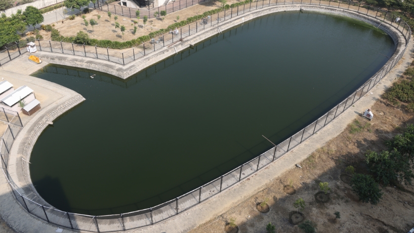 At the heart of TMU’s water conservation strategy is an advanced rainwater harvesting system, anchored by a campus lake with a storage capacity of 10 Million liters. This system systematically channels rainwater from rooftops and campus landscapes into recharge pits, replenishing the groundwater table and securing water self-sufficiency even during times of scarcity. The harvested rainwater directly contributes to core campus needs, including domestic usage, horticulture, agriculture, and fire safety.