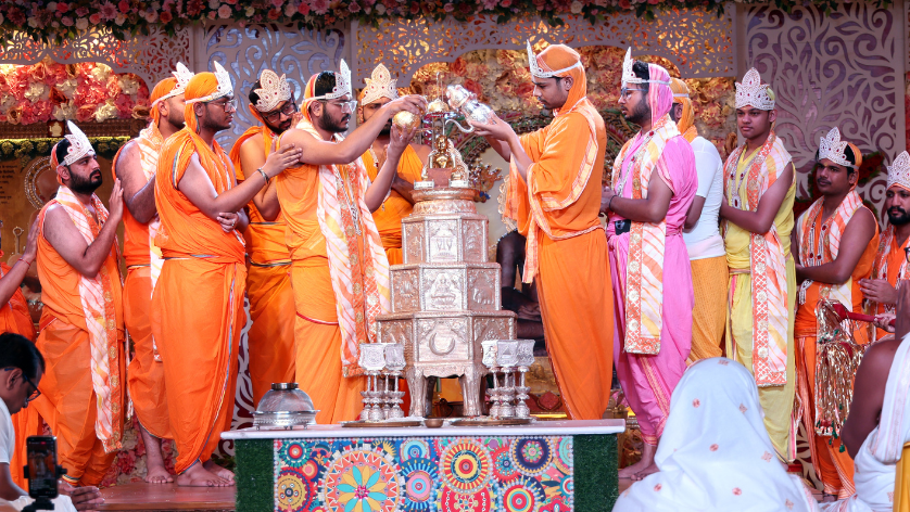The culmination witnessed the grand Abhishek and Shantidhara rituals, followed by the Poojan of Bhagwan Adinath Ji in the presence of GVC Shri Manish Jain, Kulapati Prof. V.K. Jain, and Shri Manoj Jain.
