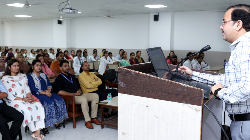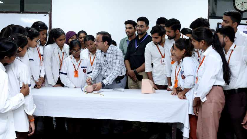 The programme commenced with a welcome and lamp-lighting ceremony in Room No. 515 of the Nursing Building, attended by dignitaries, including Prof. (Dr.) Navneet Kumar (Principal, College of Paramedical Sciences), Mr Amit Bisht (HOD, BRIT), and faculty members. Over the course of two hours, Prof. Singh emphasised the importance of:
