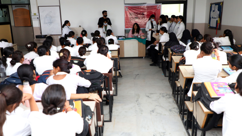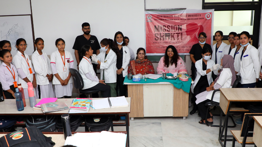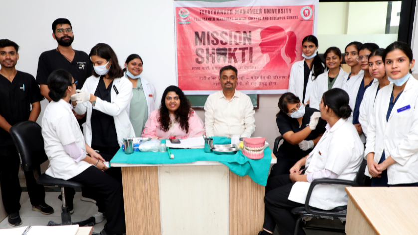 Teerthanker Mahaveer Dental College & Research Centre, Teerthanker Mahaveer University (TMU), successfully organised a special awareness camp titled “Dental Health for Women” under Mission Shakti 5.0, in collaboration with the U.P. Police. The event, hosted at the College of Nursing, focused on empowering women with essential knowledge linking oral health to overall well-being.