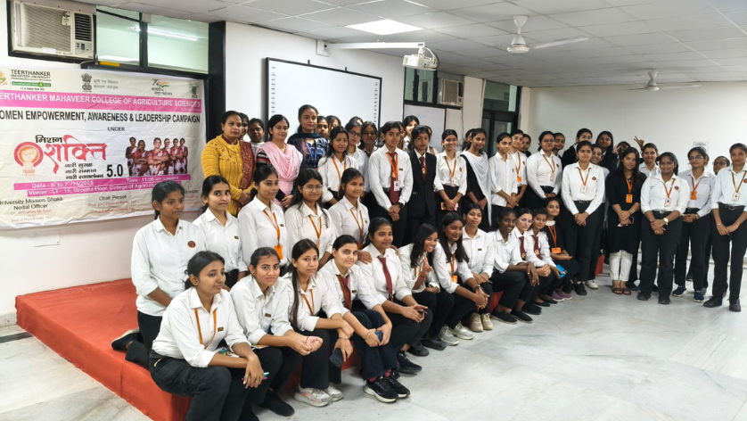 The College of Agricultural Sciences, Teerthanker Mahaveer University (TMU), organised a Female Student Visit to a Health Care Facility in collaboration with the College of Nursing, TMU, under the Mission Shakti 5.0 initiative of the Government of Uttar Pradesh. The programme aimed to enhance awareness about women’s healthcare facilities, hygiene practices, and preventive health measures available under government initiatives.
