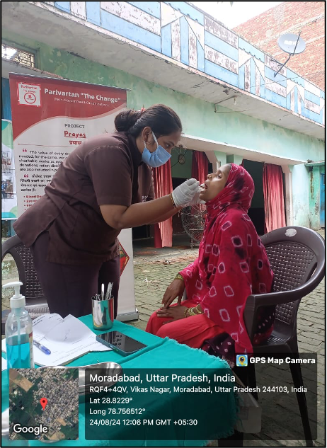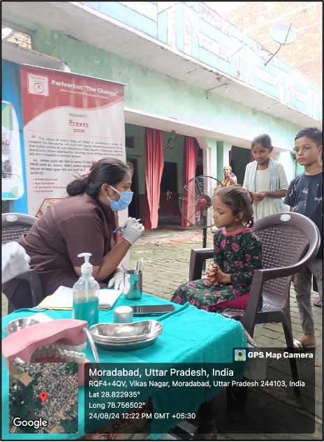 Oral health plays a critical role in an individual's overall well-being, yet it remains one of the most neglected areas of general health, particularly in underserved communities. Recognising the need for accessible oral healthcare and awareness, the Department of Public Health Dentistry, Teerthanker Mahaveer Dental College & Research Centre, organised a Dental Check-up and Oral Health Awareness Camp at Vikas Nagar, Moradabad, on 24th August 2024. The camp was conducted in collaboration with the socially active NGO Parivartan “The Change”, which works extensively towards community upliftment and health promotion.