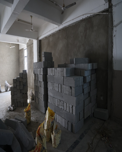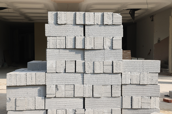 Key water saving strategies include a rainwater harvesting system. The campus features dedicated water tanks to optimize Fly Ash Bricks at Construction collection, storage, and redistribution for domestic use, fire safety, and green space irrigation, regulated by a specialized maintenance team.