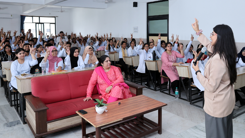 On August 25, 2025, the Department of Physiotherapy, Teerthanker Mahaveer University (TMU) organised an impactful workshop titled “Well-Being to Breakthroughs: The Mental Health Edge in Innovation and Entrepreneurship.” The event, held at LT-603, 5th Floor, Department of Physiotherapy, was attended by BPT first-semester students, faculty members, and Honourable HOD Dr. (Prof.) Shivanee M. Kaul. The workshop was led by Ms. Sanjana Jain, Project Co-lead, Mental Health for School Projects, Sangath, a reputed non-governmental organisation working in the field of mental health with Dr. Samarpita Senapati (PT) as the event coordinator and Dr. Harish Sharma (PT) as co-coordinator.