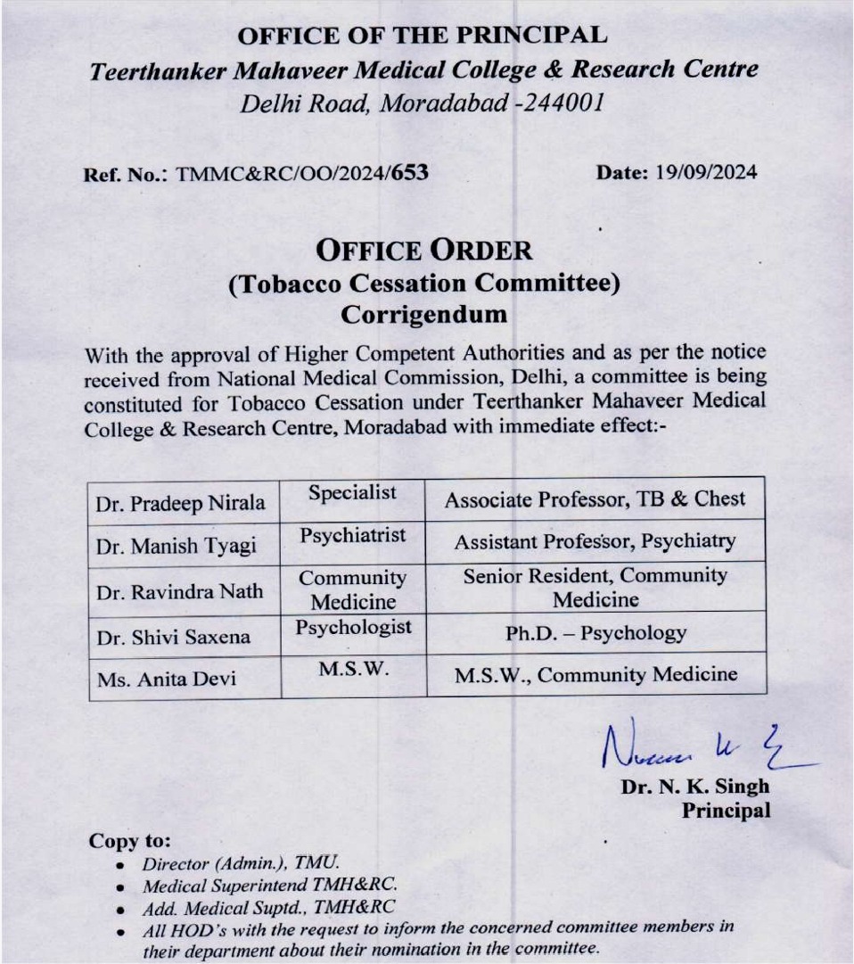 The Tobacco Cessation Committee of Teerthanker Mahaveer Medical College & Research Centre stands as a